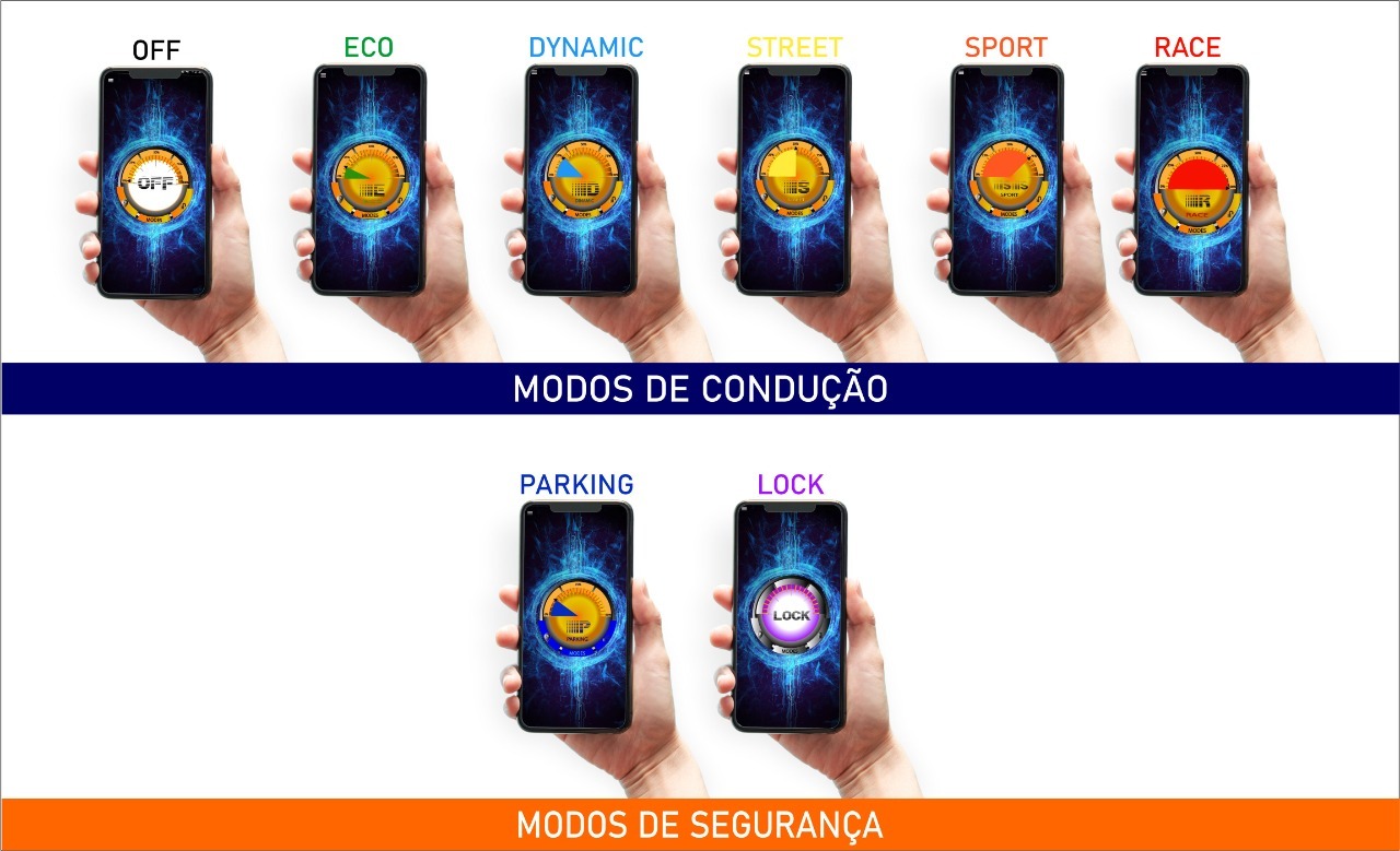 5 estágios: Normal, Sport, Super Sport, Race, Parking;