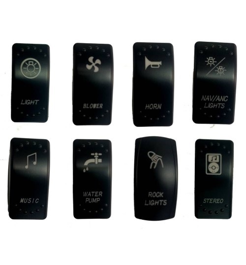 Light, Blower, Nav/Anc Lights, Music, Water Pump, Rock Lights, Stereo.