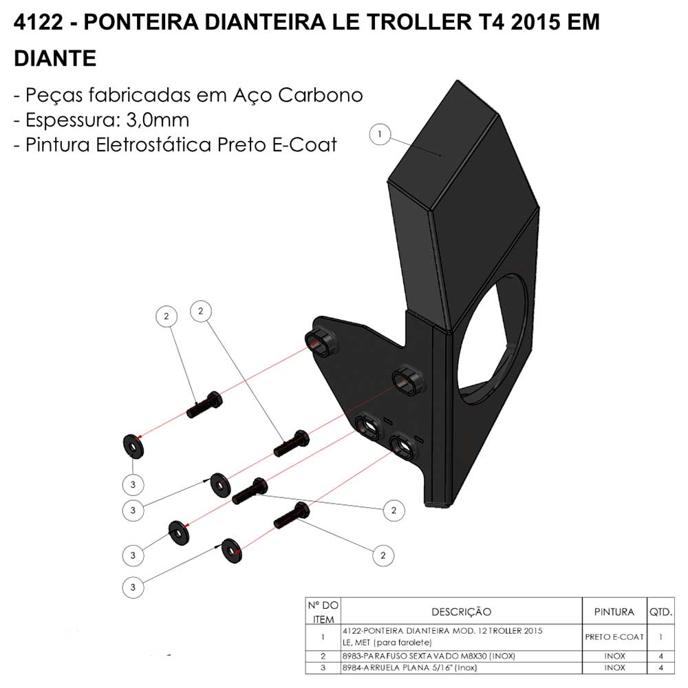 Produzido em aço carbono 3mm;