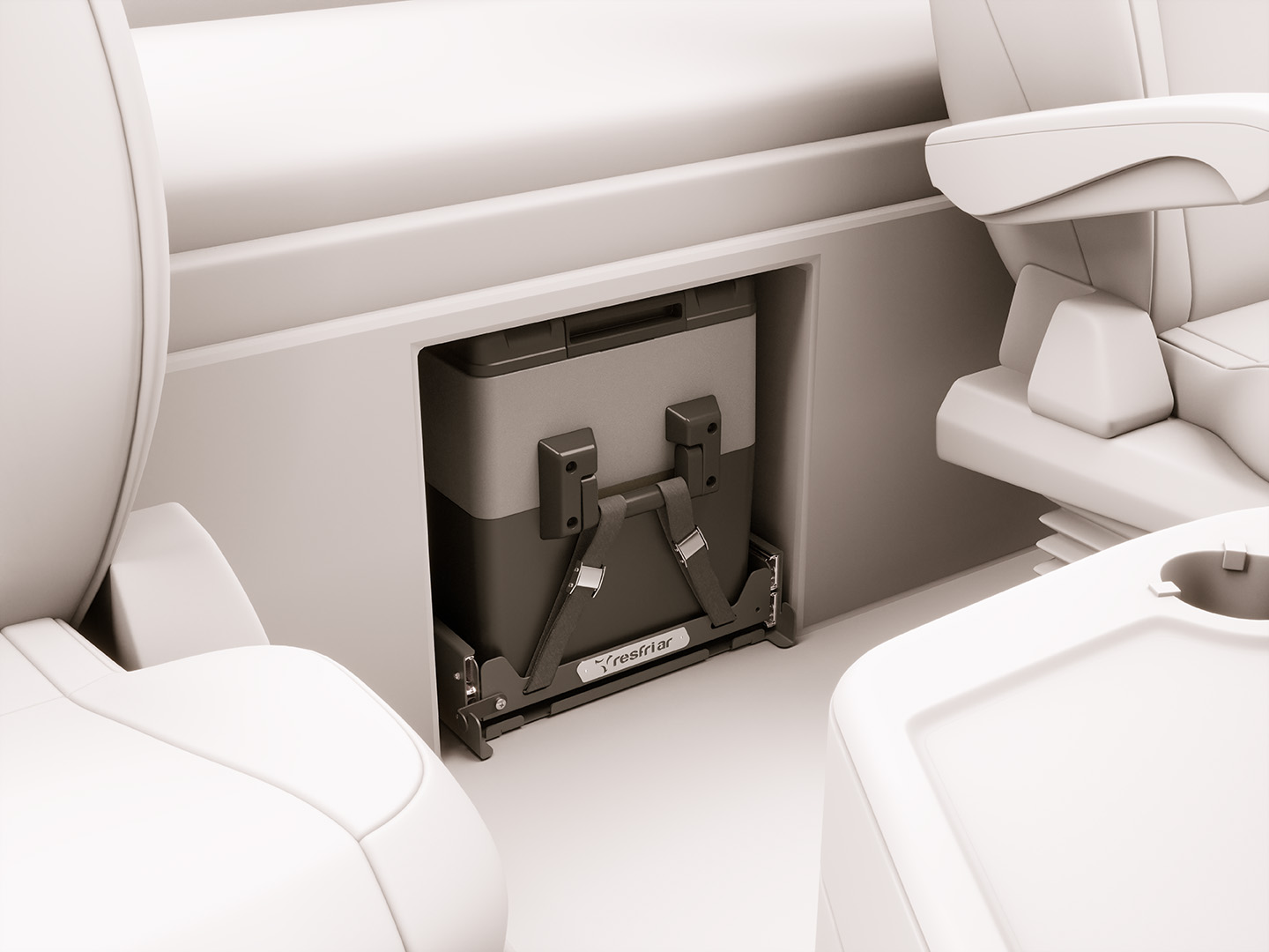 Suporte desenvolvido para Geladeira Resfri Ar de 31 Litros. Produzida em aço carbono de alta resistência com pintura eletrostática a pó. Possui duas corrediças telescópicas de cada lado para maior durabilidade. Trava de segurança com opção para utilização em ambos os lados. Acompanha 4 cintas de amarração com 80cm cada.