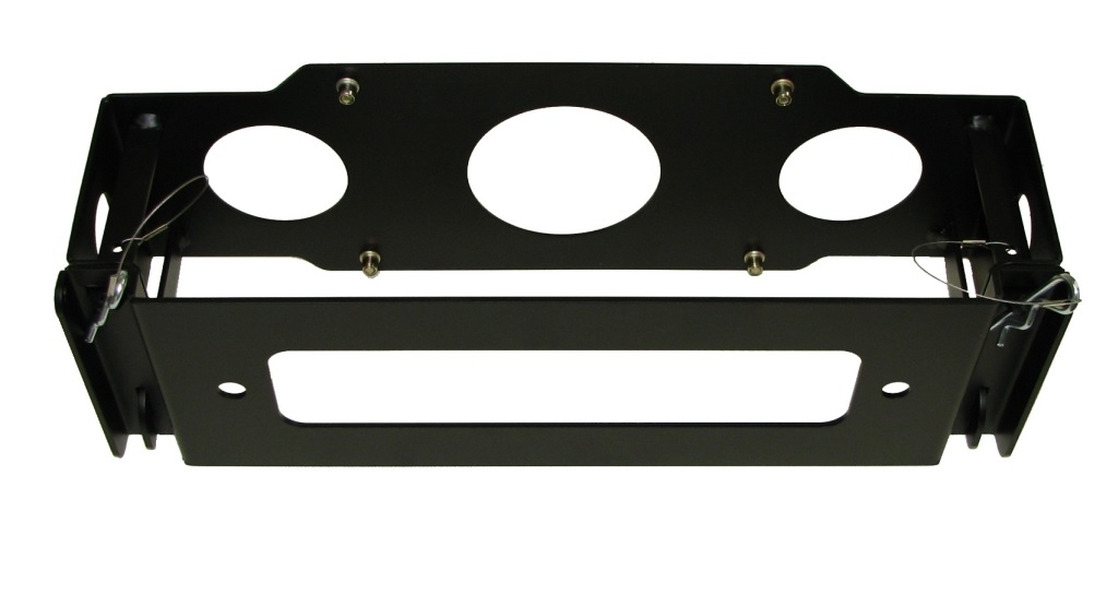 Parafusado por trás do bocal do guincho, este suporte é facilmente removido ao retirar dois grampos. Fixa firmemente a placa sobre o bocal do guincho e pode ser rapidamente retirado quando em uso fora de estrada, onde além de não precisar da placa, não correrá o risco de perdê-la em uma travessia de rio, por exemplo. Em 2 tamanhos, para uso com bocais roletados ou fixos.